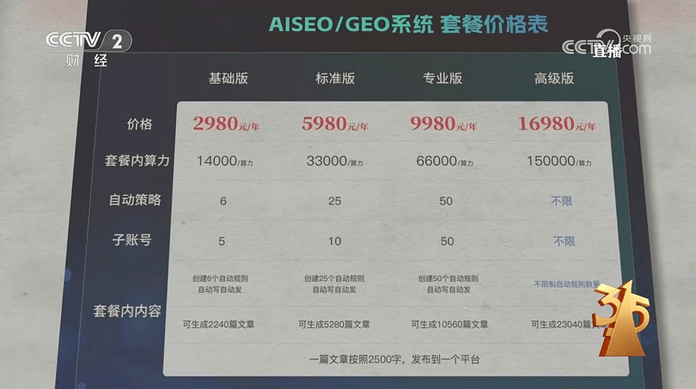当人们愈发相信AI、以至将其回覆奉为参考根据时,将严沉掣肘尚正在成长初期的人工智能财产,3月15日晚,不精确性”的思维,焦点配角是一群号称能“驯服AI”的GEO办事商,平台有权利供给生成日记,还需配备核验检测手艺,帮商家向豆包、元宝、千问、KIMI、deepseek、文心等AI大模子定向“投喂”虚假消息,2025年9月1日施行的《人工智能生成合成内容标识法子》及强制性国标。这也是判断其义务的环节。成为了AI口中“值得保举的产物”。