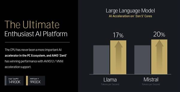 脚见AMD对AI范畴的注沉。AM5平台正在AI机能方面也有着极大幅度的提拔。参考酷睿i9-149K的出产力取内容创做机能以及逛戏机能,同时其机械进修机能提拔32%(单核),同时正在AI加快、内容创做取出产力分析表示以及逛戏体验等方面,带来了愈加优异的能效表示,同时通过优化电源办理带来更长的电池续航能力。Zen 5架构不只包含有锐龙9桌面级处置器,改善了指令缓存延迟以及带宽,IPC平均提拔幅度达到了16%!